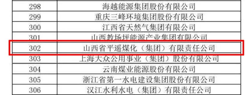 近日,2021中國能源(集團(tuán))500強(qiáng)榜單發(fā)布,平遙煤化集團(tuán)再次入圍,榮列第302位。